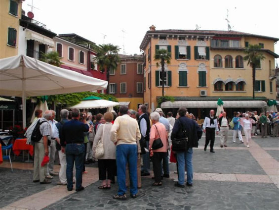Heute ging es mit dem Bus rund 150 Kilometer um den Gardasee. Im Norden liegt der See schmal zwischen den Bergen. Im Süden erreicht er an seiner breitesten Stelle eine Ausdehnung von 17 Kilometern. Der See ist 386m tief und ca. 52 km lang. Heute stand uns den ganzen Tag über eine sehr kompetente Reiseleiterin (Andrea aus Riva) zur Verfügung (ihre Herkunft konnte sie durch den Münchner Dialekt nicht verheimlichen). An einem Fußgänger Überweg erzählte sie uns einen Witz, dem zufolge gibt es in Italien nur 2 Arten von Fußgängern 1. die Schnellen 2. die Toten. Den ersten Aufenthalt gab es auf der Halbinsel Sirmione mit römischen Ruinen. Mit dem Schiff setzten wir nach Salo über, dem westlichsten Zipfel des Sees. Der Dom war leider geschlossen.