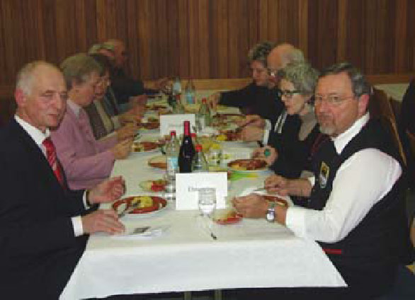 Der erste Vorsitzende, Heinz Kaldi, begrüßte die Gäste, insbesondere die Stadträtinnen Frau Christa Breuninger und Frau Ursula Hefter-Hövelborn. Auch den Vorsitzenden des Kreisverbandes der Donauschwaben, Herrn Richard Harle mit seiner Gattin, konnte er begrüßen. Er war mit einem Päckchen unter dem Arm gekommen. Heinz Kaldi stellte das interessante Jahresprogramm 2011 vor, verteilte Flyer für das Lammgulasch-Essen am 26. März und wies auf den Jahresausflug nach Paris hin, der vom 26. – 29. Mai mit einem tollen Programm stattfinden wird und dass noch einige Plätze frei sind.