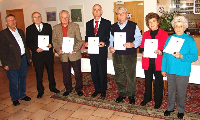 Nach der Begrüßung durch den 1. Vorsitzenden Heinz Kaldi wurden folgende verdiente Mitglieder mit Urkunde und Ehrennadel geehrt: