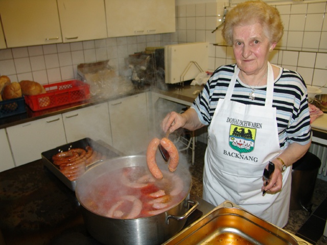 Wie jedes Jahr fand am Samstag, 21. Januar 2012, das traditionelle Bratwurstessen im Kath. Gemeindehaus in der Lerchenstraße in Backnang statt. Von vielen fleißigen Helfern wurden 120 kg Bratwürste nach donauschwäbischem Rezept hergestellt. Dazu wurde Meerrettich und vom Küchenteam selbst hergestellter Kartoffelsalat gereicht. Die anwesenden Gäste ließen sich die gut gelungenen Würste schmecken.