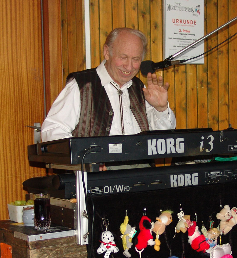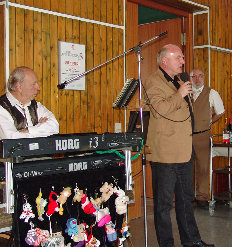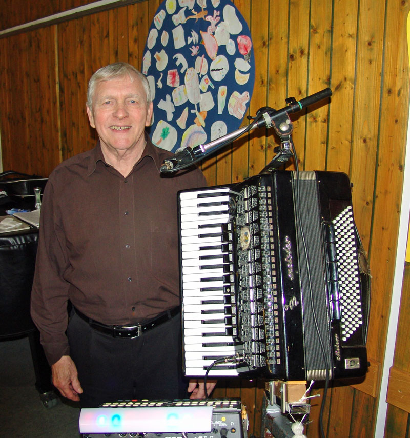 Heinz Kaldi bedankte sich herzlich bei Alfred Bauer und Richard Harle und stellte den Alleinunterhalter Friedl Binder vor, der anschließend zum Tanz aufspielte.