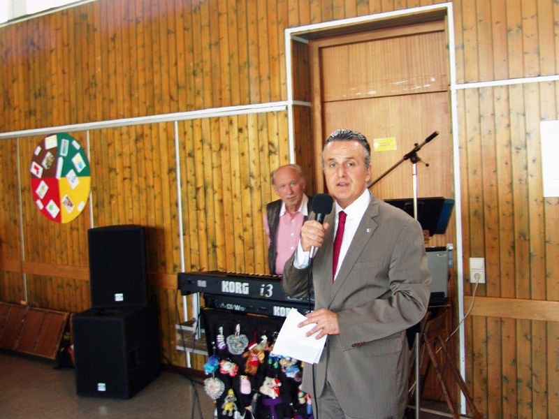 Im Namen des Ortsverbandes Backnang der Landsmannschaft der Donauschwaben begrüßte der erste Vorsitzende, Heinz Kaldi, die Gäste. Ganz besondere Willkommensgrüße richtete er an den Ersten Bürgermeister Michael Balzer mit seiner Gattin, Frau Breuninger von der CDU und Herrn Alfred Bauer mit Gattin vom Bürgerforum Backnang, an den Vorsitzenden des Kreisverbandes der Donauschwaben, Herrn Richard Harle und an den Hausherrn, Herrn Pfarrer Kloos mit Pfarrvikar Amedeus Tarimo.