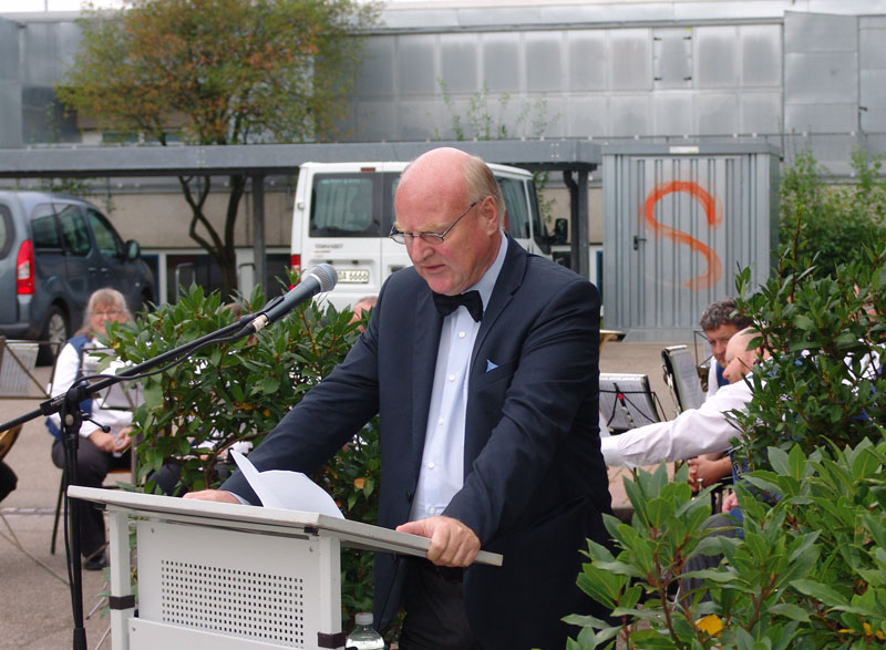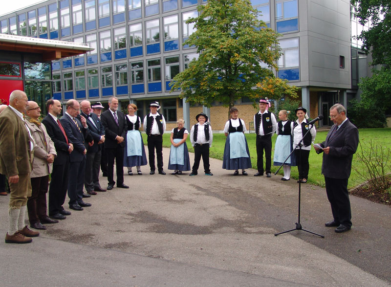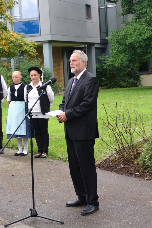 Der erste Vorsitzende des Ortsverbandes Backnang der Landsmannschaft der Donauschwaben, Heinz Kaldi, begrüßte die anwesenden Gäste, insbesondere den Ersten Bürgermeister der Stadt Backnang, Herrn Michael Balzer, den Festredner, Herrn Innenminister a. D. Heribert Rech, MdL und zugleich Vorsitzender des Vereins „Haus der Donauschwaben in Sindelfingen“, die Landtagsabgeordneten Wilfried Klenk und Gernot Gruber sowie Mitglieder des Gemeinderats und Kreistags aus Backnang. Ebenso hieß er Dekan Wilfried Braun und den Vertreter der Vertriebenenverbände und Landsmannschaften, Herrn Klaus Loderer herzlich willkommen.