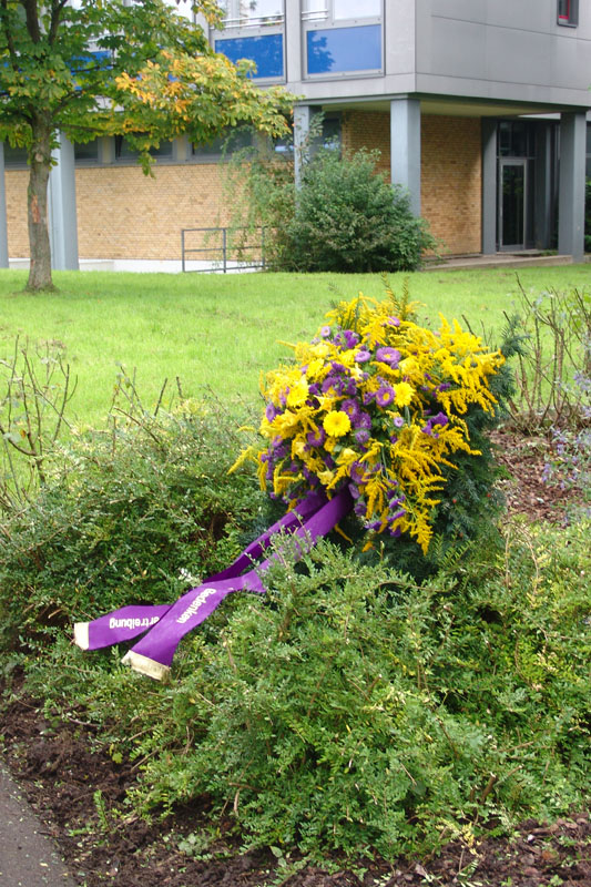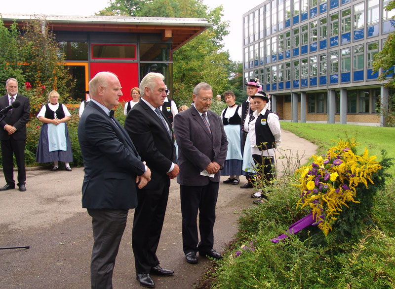 Die Feierstunde endete mit einer Kranzniederlegung am Mahnmal und dem Singen der dritten Strophe des Deutschlandliedes.