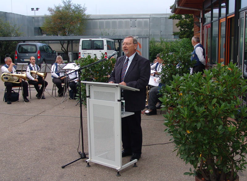 Der Erste Bürgermeister Michael Balzer überbrachte Grüße der Stadt Backnang. Es sei gut und richtig, zum Mittagessen einzuladen. Die Bratwürste haben wieder ausgezeichnet geschmeckt und er freue sich, von so vielen Menschen umgeben zu sein. Mit einem weinenden Auge habe er zur Kenntnis genommen, dass es das Fischgulasch-Essen nicht mehr geben wird, habe jedoch Verständnis dafür, dass Veränderungen und adäquate Reaktionen notwendig werden, wenn der enorme Arbeitsaufwand nicht mehr gestemmt werden könne.