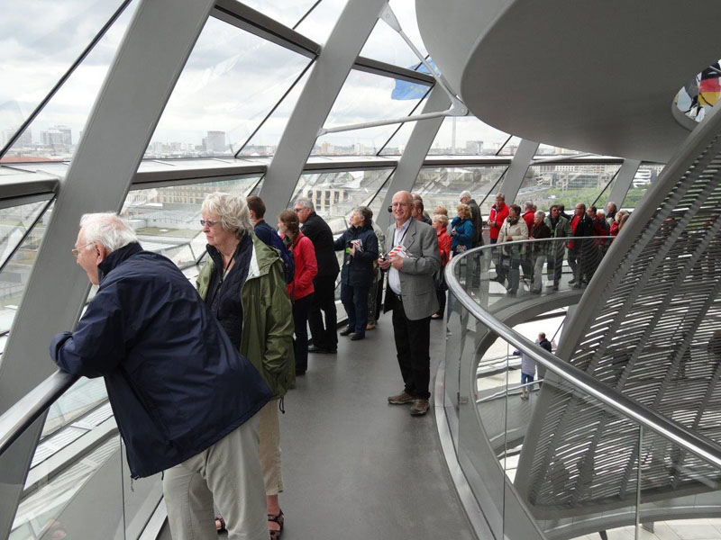 Das Programm der Berlinreise beinhaltete die Besichtigung des Plenarsaals des deutschen Bundestags im Reichstagsgebäude. Hier informierte der Besucherdienst des deutschen Bundestags in einem beeindruckenden Vortrag über Historie, Aufgaben und Arbeit des Parlaments. Im Anschluss konnte die Glaskuppel des Architekten Sir Norman Foster besichtigt werden. Sie diente zum Abschluss des Höhepunkts unserer Bildungsreise als Kulisse für das Gruppenfoto.