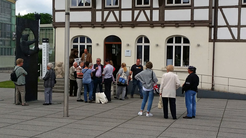Der diesjährige Tagesausflug führte die Backnanger Donauschwaben zuerst ins Margarethe Steiff Museum nach Giengen an der Brenz. Dort begleiteten uns "Knopf und Frieda" durch animierte bunte Teddy-Erlebniswelten. Vorher konnte man interessante Details aus der 135-jährigen Steiff-Geschichte erfahren. Nach den kreativ animierten Erlebniswelten durften die unterschiedlichsten Tiere aller Größen und Rassen auch mal gestreichelt oder beritten werden. Nach der Safari im Streichelzoo rutschten jung und alt durch eine 15 Meter lange Schlangenrutsche in rasanter Geschwindigkeit hinunter zur Schaufertigung, wo neue Teddybären befüllt und genäht wurden. Daran schloss sich ein Steiff Shop an, in dessen Regalen ein bunter Zoo an Plüschtieren nur darauf wartete befreit zu werden. Lori der Papagei und Knopf der Teddybär konnten überzeugen und begleiteten fortan die Donauschwaben auf ihrer weiteren Reise.