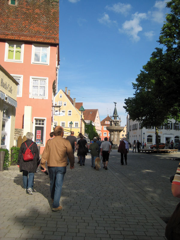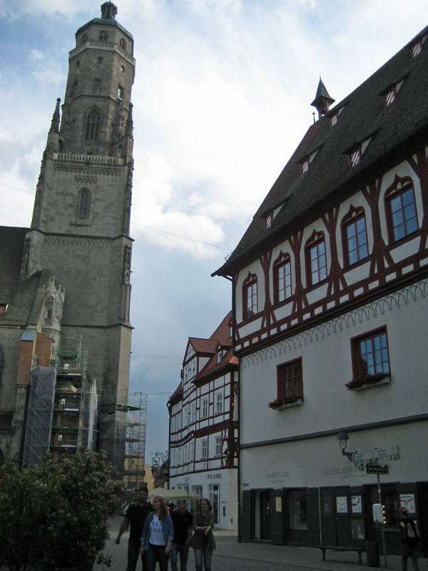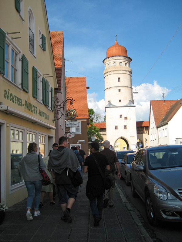Spätnachmittags brachen wir auf zur letzten Station unserer Reise - nach Nördlingen. Nördlingen liegt im Nördlinger Ries, dem Einschlagkrater eines ca. 1 km großen Meteoriten, der vor 15 Millionen Jahren in die Alb eingeschlagen ist. Der Krater hat einen Durchmesser von 23 bis 25 Kilometern; sein Rand ist ringsum als Hügelkette sichtbar. Durch die wissenschaftliche Erforschung des Ries-Ereignisses wurde Nördlingen weltweit bekannt.