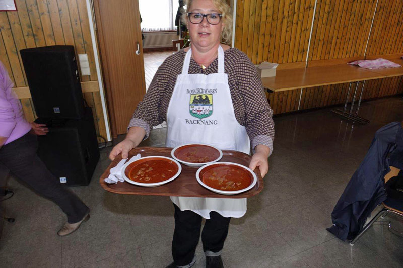 Der 1. Vorsitzende der Landsmannschaft der Donauschwaben Ortsverband Backnang, Heinz Kaldi, konnte gegen 12 Uhr am Sonntagmittag, 2. Oktober 2016, wieder viele Gäste, die zum Gulaschessen gekommen waren, begrüßen. Neben dem traditionellen Lammgulasch wurde von dem eingespielten Küchenteam wieder ein gemischtes Gulasch zubereitet. Allen hat es vorzüglich geschmeckt und wer seinen Teller behielt wurde auch noch mit einem Nachschlag bedient.