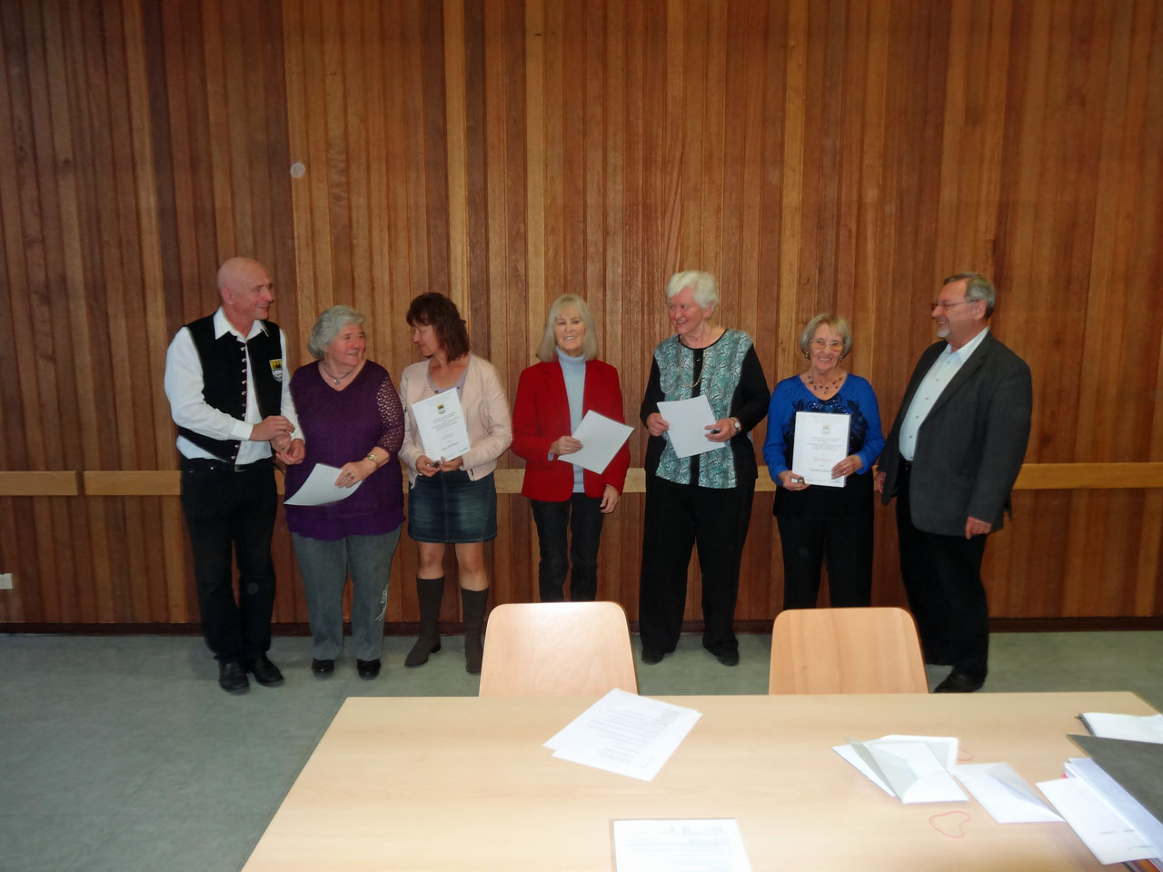 v. l. Günther Weißbarth 2. Vors., Anna Haas, Beate Weißbarth, Katharina Längle, Rita Pollich, Johanna Schnersch, Heinz Kaldi 1. Vors.