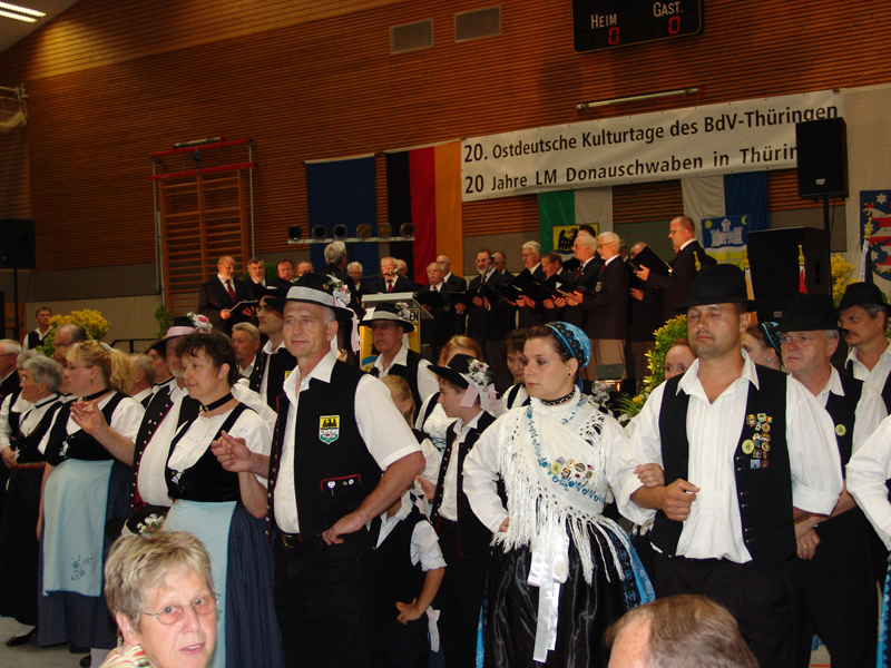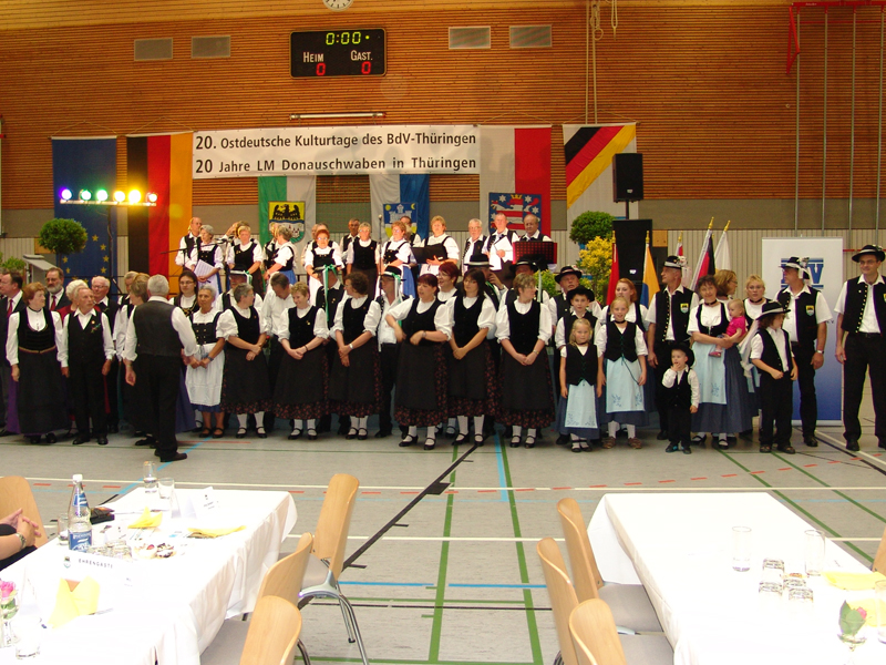 Die Donauschwaben aus Erfurt, deren Ortsverband erst nach der Wende gegründet werden konnte und der nächstes Jahr sein 20-jähriges Bestehen feiern kann, waren über die Darbietungen sehr erfreut, bedankten sich herzlich und luden die Donauschwäbische Tanz- und Trachtengruppe Backnang zu diesem Jubiläum nach Erfurt ein.